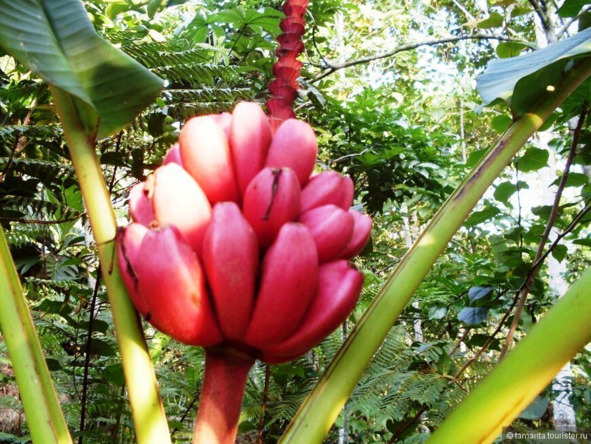 Напротив моей террасы зрела гроздь розовых бананов, которые на вкус оказались точно такими же, что и привычные нам жёлтые плоды. А справа от домика рос цветущий куст в синем с жёлтым мареве. Сладко пахли цветы. Я уже собралась взять в руки соцветия и вдохнуть утреннюю свежесть, как все цветы разом взмыли в воздух и запорхали красками, словно бабочки. От неожиданности замерла. А сразу ведь не догадаешься, что это колибри! Разноцветная яркая стайка «длинноносиков» быстро удалилась.
