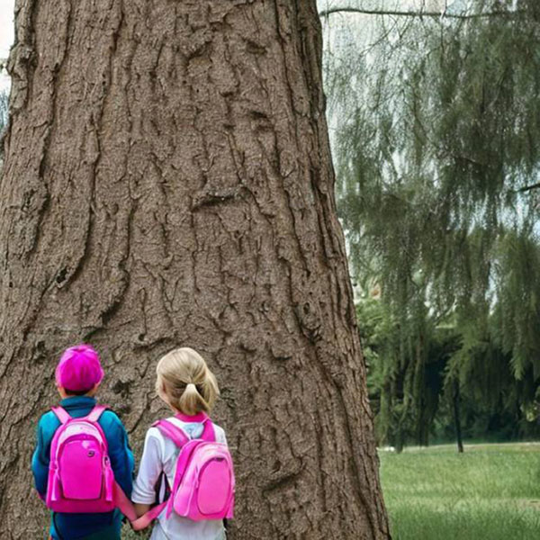 Дети подошли к дереву, начали внимательно его осматривать и обнаружили большое дупло. Они стали подпрыгивать в попытке заглянуть в него, но дупло находилось слишком высоко для их роста.