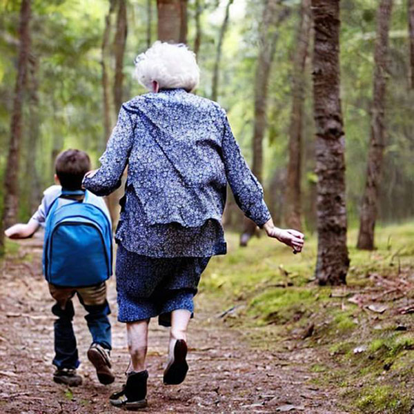 Взяла его за руку и быстро так в лес дремучий повела. А Грибик смело идёт, ничего не боится. Только вспомнил, что обещал Танечке никуда не уходить, и говорит: