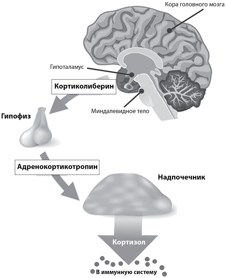 В числе прочего гипоталамо-гипофизарно-адреналовая ось объясняет физиологические и психологические проблемы у переживших насилие и/или находившихся в хроническом стрессе в детстве и во взрослой жизни. Посмотрите на иллюстрацию оси ГГА (илл. 2.1).