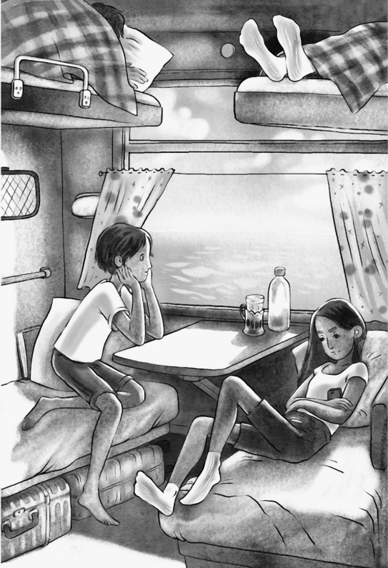 И сейчас, в поезде, он положил камешек под подушку, смотрел в окно и думал: как здорово всё-таки в Сосновке, так не хочется уезжать…