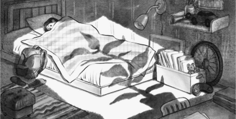 Вечерами, лёжа в одиночестве в своей комнате, он прислушивался к шорохам в шкафу и за окном. Проезжающие машины окружали его неясным светом, пробегающим по стенам, и казалось, что он в отсеке космического корабля, который летит куда-то, неизвестно куда, и он один в большом холодном космосе…