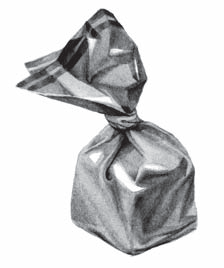 Тогда я выхожу на улицу, встаю под дерево, что растет у крыльца, и тяну за ветку. На меня сыплются снежинки, серебряные и золотые, похожие на конфетти, сделанные из дедушкиных фантиков, и немножко на звезды, и я сразу понимаю, каким должен быть фантик для новой конфеты. Я бегу к дедушке и хвастаюсь: