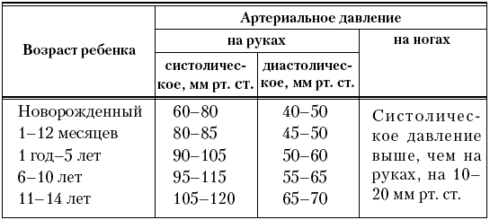 Артериальное давление измеряют на руках, по показаниям – на ногах. Полученные результаты сопоставляют с нормативами (табл. 2).