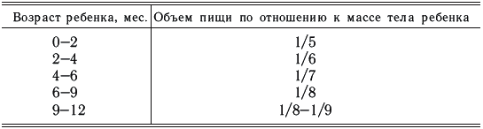 Суточный объем рациона детей в возрасте 1–1,5 лет – 1000–1100 мл, 1,5–3 лет – 1200–1300 мл, 4–6 лет – 1500–1600 мл; 7–10 лет – 2000–2200 мл, старше 10 лет – 2300–2500 мл.