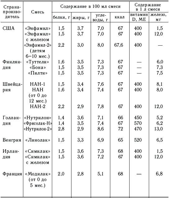 Адаптированные смеси являются заменителями женского молока (табл. 8, 9).