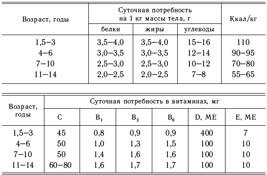 Суточная потребность детей в основных пищевых веществах