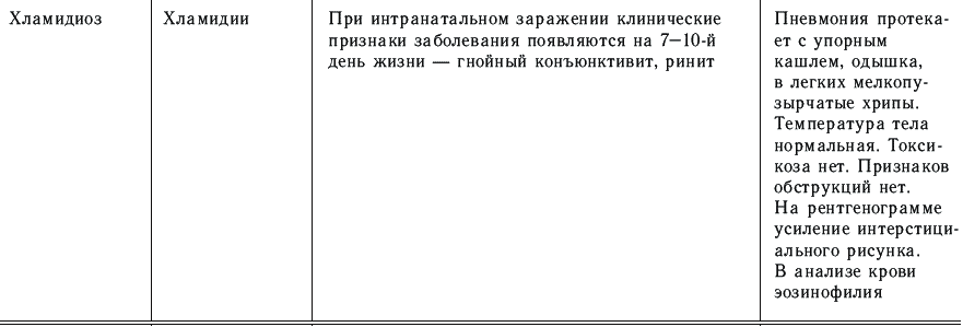 При интранатальных пневмониях состояние детей в первые часы, сутки после рождения может быть удовлетворительным. На 2–3-й день жизни появляются признаки дыхательной недостаточности, поднимается температура тела и появляются изменения в легких: при перкуссии – участки укорочения звука и участки тимпанита, при аускультации – мелкопузырчатые влажные звучные хрипы. В зависимости от возбудителя заболевания клиническая картина пневмонии может иметь некоторые особенности.