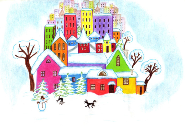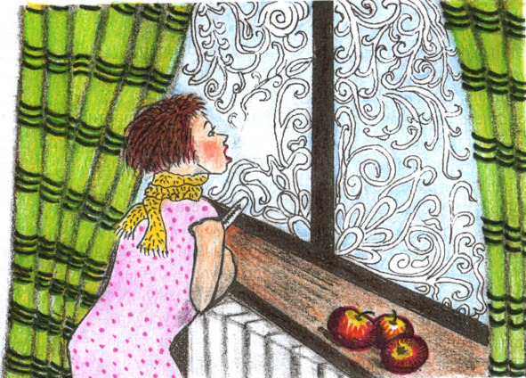 7eng). The Snowflakes drew an amusing rooster on the window glass. Suddenly the rooster got alive and started to jump and dance in a funny way. Having laughed a lot Tata noticed with relief that she felt herself much better. And she became healthy in a few days. The Funny Snowflakes started to fly to Tata quite often, they told surprising stories about their journeys and they played merily with her in the yard.