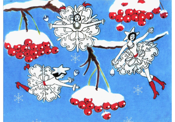 5eng). Suddenly unusual sounds were heard beyond the window. Shaking with weakness Tata came to the window and she didn’t believe her eyes. Snowflakes-ballet dancers in silver twinkling dresses were flying above the bush of red frozen ash berries. They were flying, singing, dancing and ringing with little ice bells.