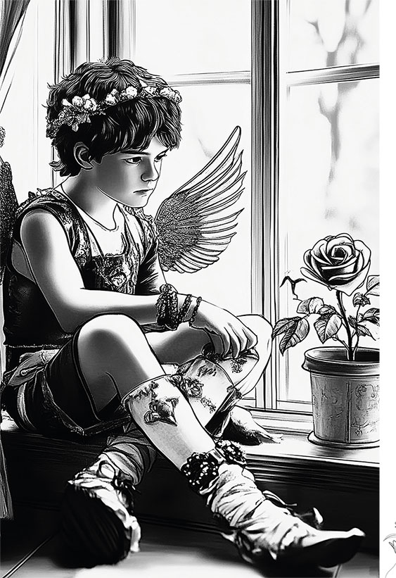 На подоконнике стоял горшок с цветком, Китайская Роза, которая очень давно не цвела, хотя её регулярно поливали. Амур посмотрел на Розу и ему стало ещё тоскливее.
