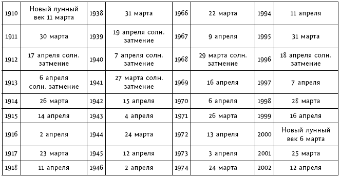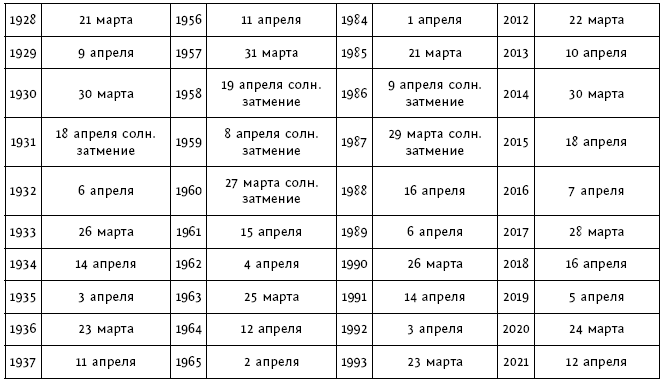 Совершается в 17-й день первого месяца лунно-солнечного года, который начинается 22 марта и продолжается по 21 апреля, вслед за весенним равноденствием с первым новолунием после начала солнечного года. В 2000 году начинается новый 90-летний цикл этого календаря с новолуния перед весенним равноденствием – 6 марта 2000 года. В 17-й день первого месяца этого года надо идти в храм, соприкоснуться с вечной жизнью, испить чашу очищения, причастия, благодати, бессмертия.