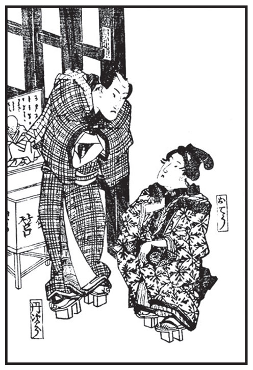 Так говорит она сама себе и глубоко вздыхает. Как раз в этот момент сёдзи раздвигаются и появляется гейша бансин, помощница ойран.