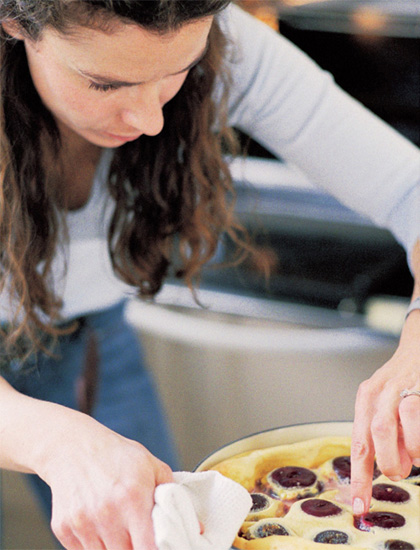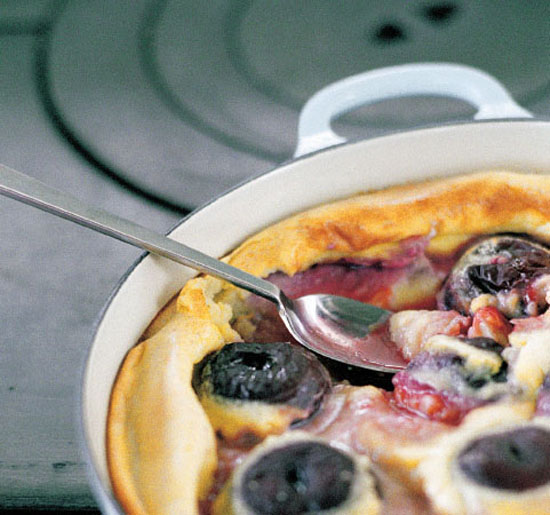 The aim of this dish is that the fruit should be surrounded by a soft, only just set, cake. It’s almost like having Yorkshire pudding with jam on top! You need to serve it straight from the oven, otherwise it will continue to cook and become hard and stodgy.