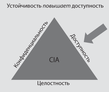 ПРИМЕЧАНИЕ. Многие пользователи переводят информацию в облако по той единственной причине, что оно чрезвычайно надежно (почти всегда доступно) по сравнению с более традиционными уровнями обслуживания во внутренних центрах обработки данных. Как показано на рис. 1.4, устойчивость повышает доступность, что делает публичное облако привлекательным вариантом с точки зрения безопасности.
