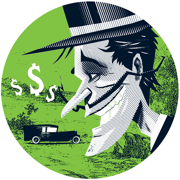 Не успел Уоррен ответить, как снаружи раздалось громкое БИП!БИП! БИП! Выглянув в окно, мальчик увидел, что недавние гости бредут по дороге в ближайший город, волоча за собой багаж. Внезапно дорогу им перегородил странный автомобиль – тот самый, который Уоррен видел утром. Дверь со стороны водителя распахнулась, и из нее, выпятив грудь колесом, вылез мужчина – лиловый костюм скверно сидел на нем. Волосы у него редели, зато длинные закрученные усы торчали, словно антенны, а ноги были тонкие, как у паука. При виде растерянной толпы мужчина широко улыбнулся, и золотые зубы засверкали на солнце.