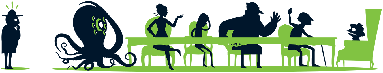 На зов Уоррена откликнулись мистер Фриггс, шеф Буньон, Скетчи, Беатриса, Петула и дядя Руперт. (Мистер Вандербелли тоже проскользнул в зал с блокнотом и пером наготове.) Общими усилиями поставили стол на ножки, и каждый достал себе стул из груды в углу комнаты.