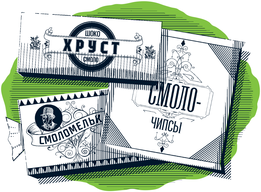 Они весело последовали за продавцом через весь магазин в другую его часть, где пестрыми соблазнительными рядами были выложены пирожные и сласти. Уоррен и Петула так и ринулись к ним. Глаза их были прикованы к шоколадному батончику с надписью «Шоко-Смоло-Хруст», упаковке «Смоло-чипсов» и пакетику сочных на вид «Смоломелек».