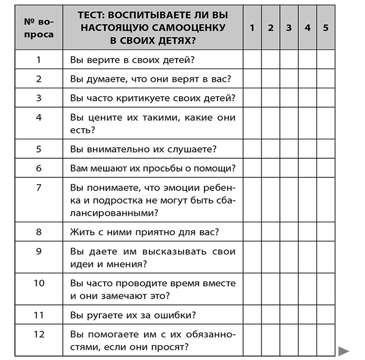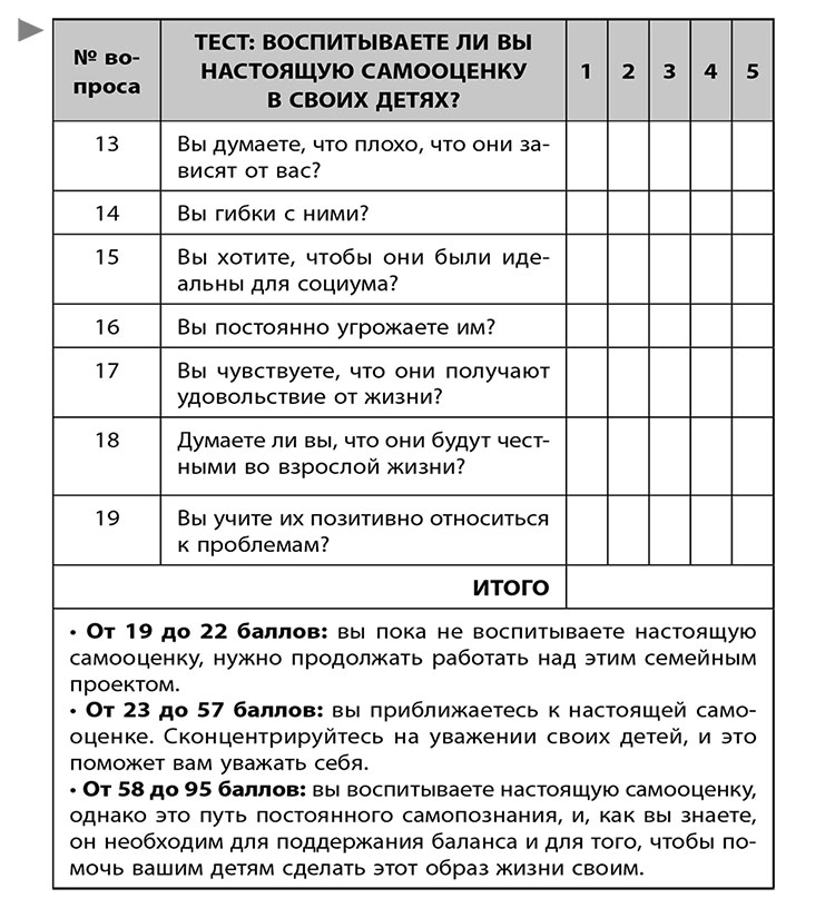Теперь ответьте на следующие вопросы, которые помогут вам узнать, воспитываете ли вы настоящую самооценку.