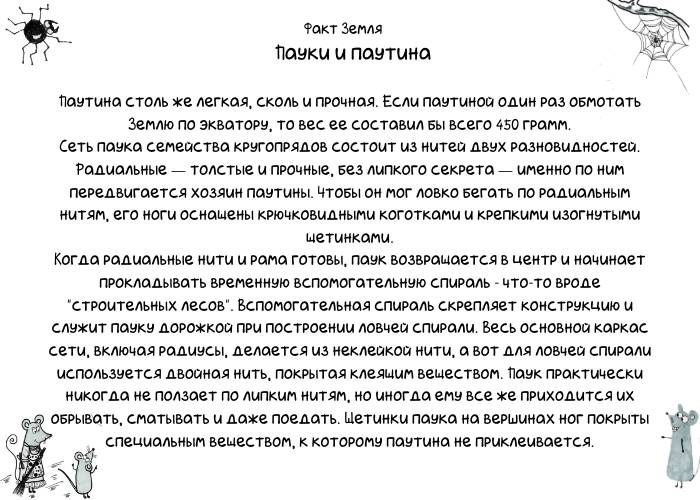 – Мама! – кричит радостный Макс. – Я понял! Пауки плетут паутину по строгому алгоритму. Радиальные нити не липкие, а круговые липкие. Он передвигается на маленьких коготках, не задевая липкие нити.