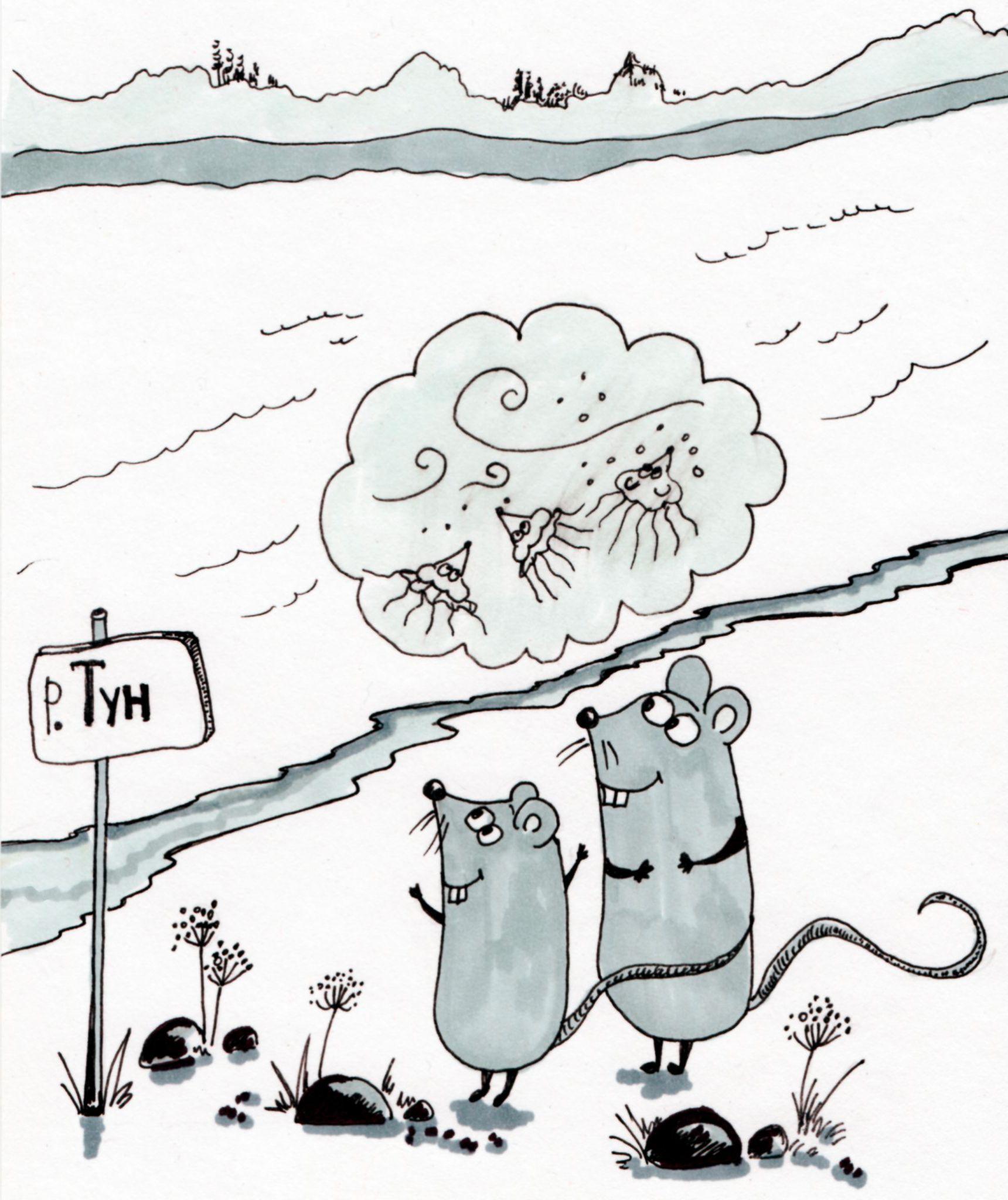 Рядом была река Тун. Она может и не такая огромная как океан, но так как шымята никогда его не видели, то река им казалась весьма внушительной. Океан – это когда берега не видно, и еще его кто-то сильно посолил. А у реки видно другой берег. Микс и Макс никогда не были на другом берегу, как и другие известные им шымы.
