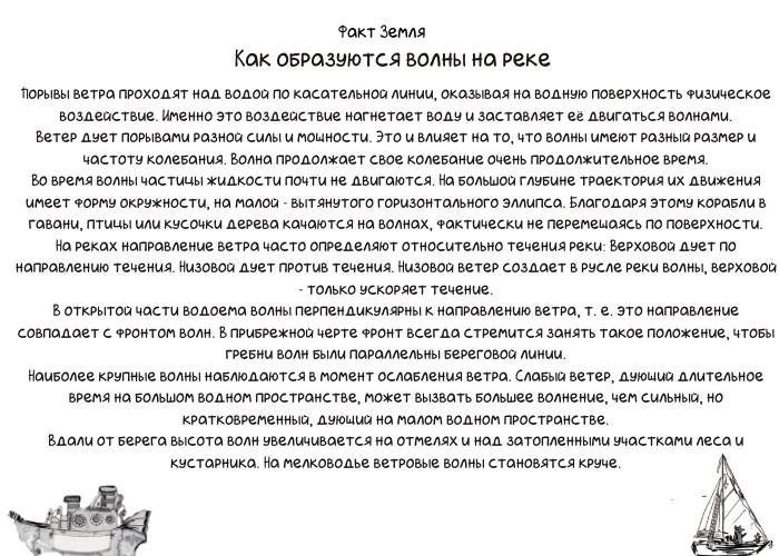 – Дедушка рассказывал, что есть водоросли-волнушки, которые могут так разволноваться, что вода в реке начинает раскачиваться и покрываться волнами. Но это все сказки. Волны образует ветер.