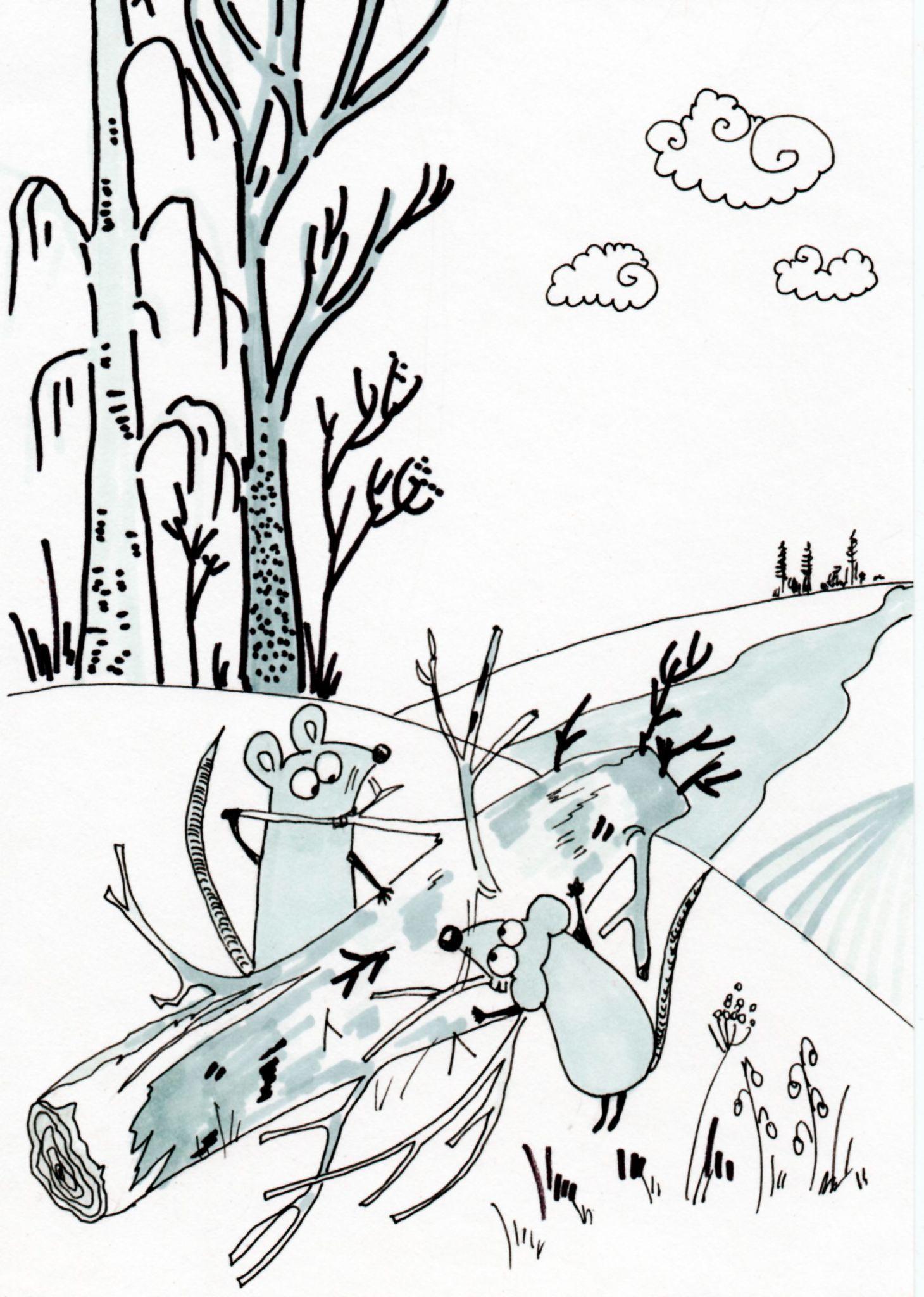 – Мы перегрызем в одном месте ствол, и у нас получится кусок дерева, который мы сможем дотащить волоком до реки. Мы сейчас на холме, а река под холмом. Подтолкнем, и бревно само скатится. На реке живет бобер Хилли, у него есть инструменты. Попросим. Я думаю, он не откажет нам в помощи.