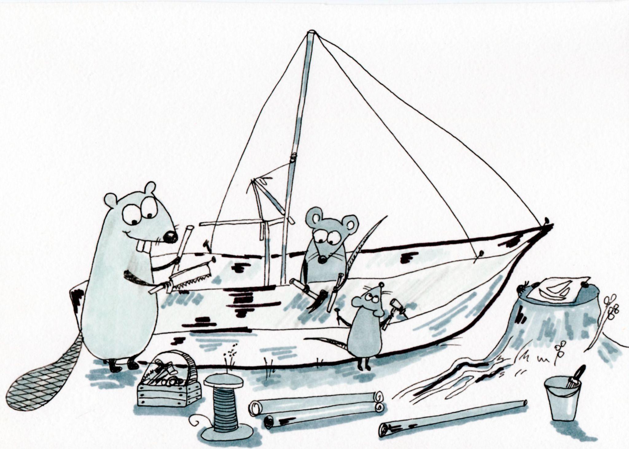 С бобром шымы очень быстро сделали корпус корабля. Шымы, конечно, грызуны, но с бобрами не сравнятся зубами. Вместе они даже сделали мачту из ветки дерева. Как раз нашлась подходящая, но вдвоем шымята ее бы не укрепили. Она должна была стоять ровно. Макс и Микс еле удерживали мачту, пока Хилли её закреплял.