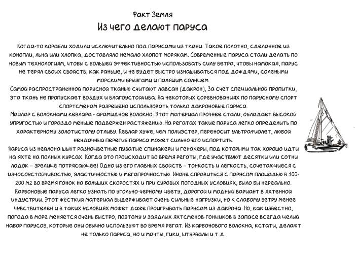 – Это парус. Он крепится к мачте. Парус использует ветер, чтоб корабль мог быстрее плыть.
