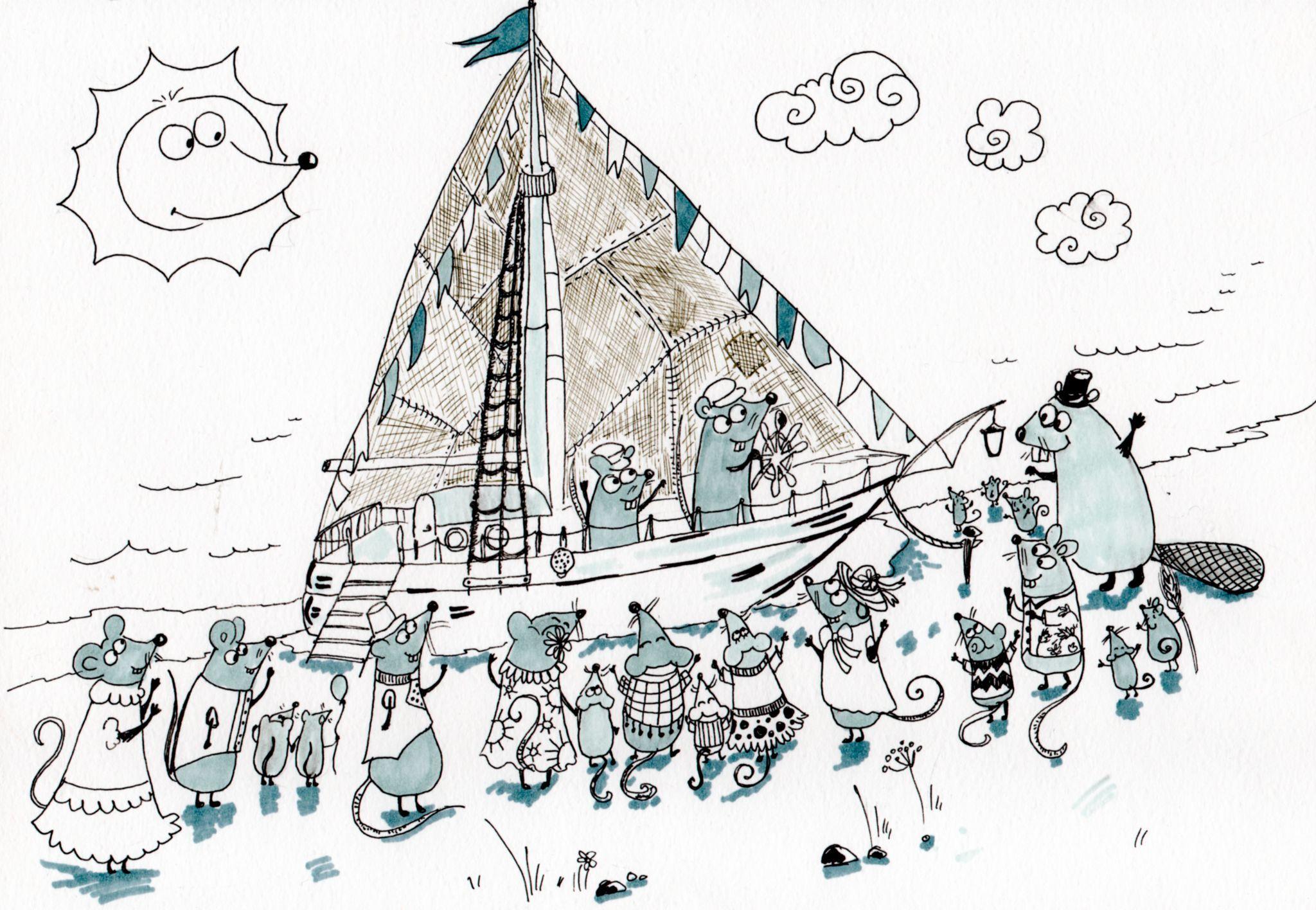 На берегу собралось столько шымей! Весть, что утром отплывает корабль, разнеслась молниеносно. А всего лишь братья Пых сказали одному шымёнку Втори, который везде успевал побывать за один день. Удивительно, как он не узнал про корабль раньше. Втори голову сломал, как ТАКОЕ построили под его носом, и он не заметил. А потом понял, что ему не к кому ходить на реку с вопросами, там шымы не любят селиться, слишком сыро. А с бобром Хилли не поговоришь, он вечно не находит время на разговоры.