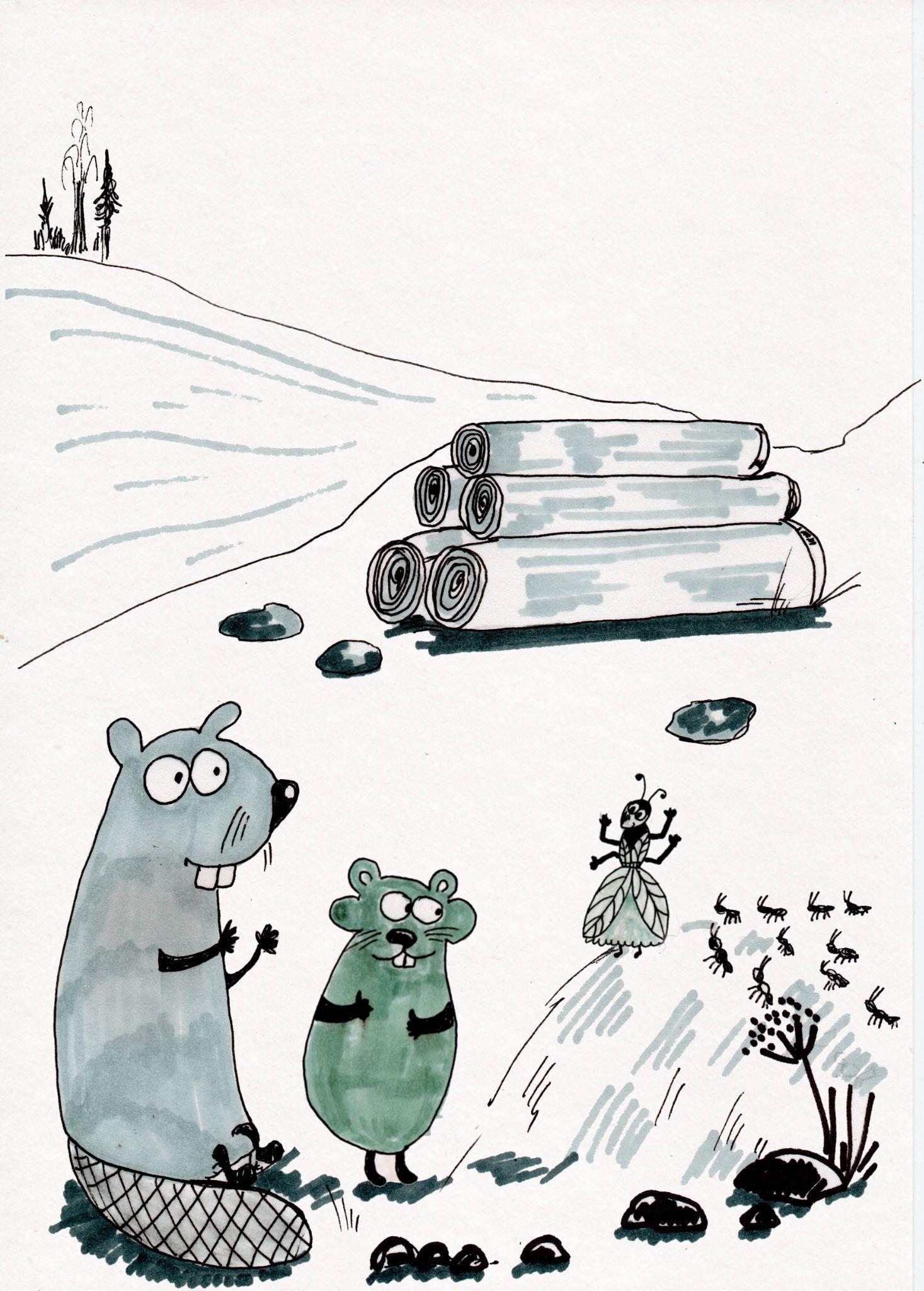 Но когда муравьи взялись за дело, то Хилли изменил свое мнение. Маленькие, но дружные трудяги выполняли все команды точно и оказались отличными помощниками. Они таскали брёвна во много раз превышающие их рост и вес. Когда они несли огромное бревно, то казалось, что оно само передвигается.