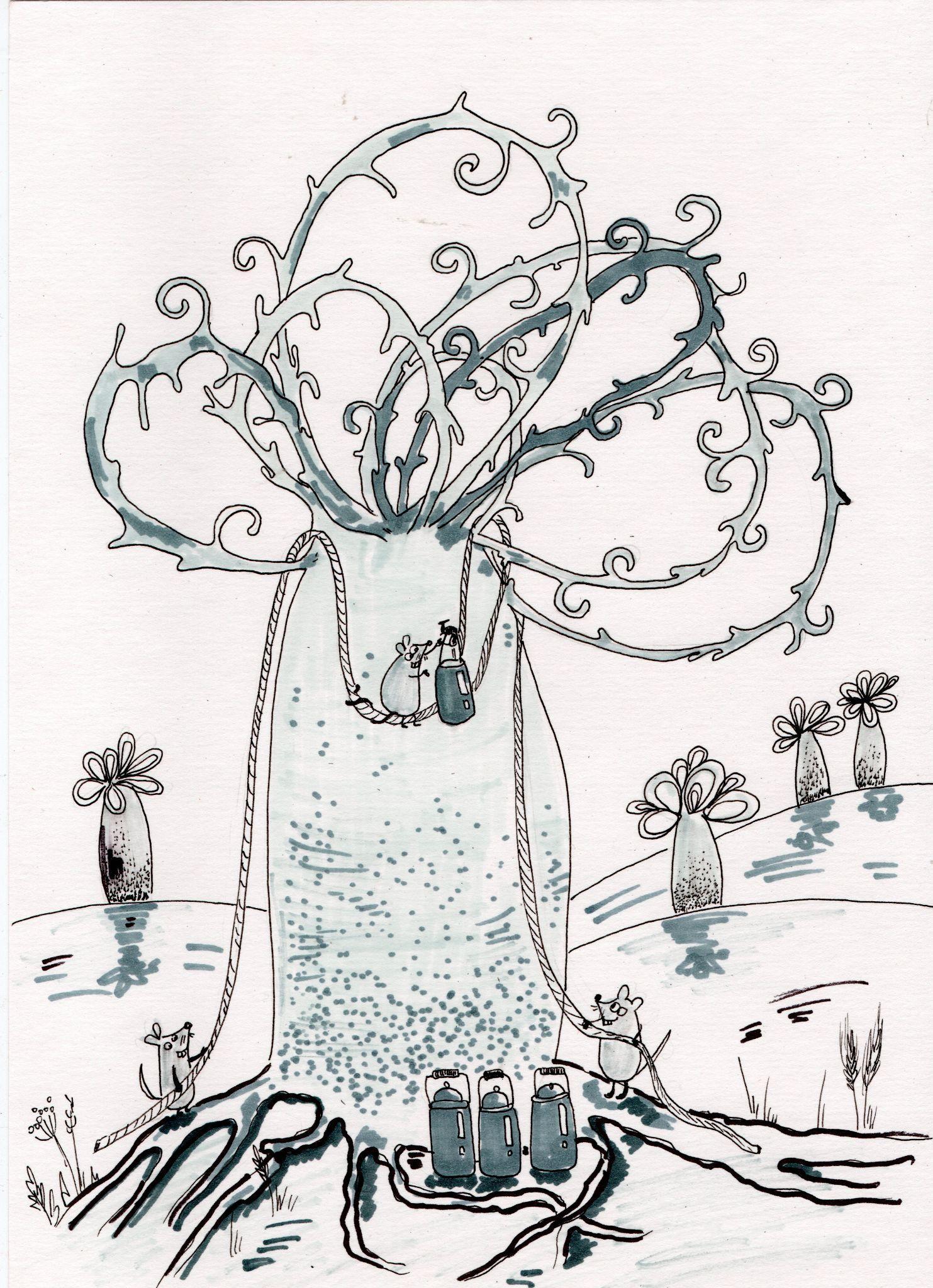 Мими делала сыр из древесного молока дерева мопико. На шыминой планете росло много молочных деревьев, которые похожи на наши баобабы: толстые, крепкие и внутри у них накапливается сок. Этот сок как молоко. Коровы были на Гораносе, но подоить её шымы не могли. Они даже боялись к ним приближаться, чтобы не оказаться под копытом.