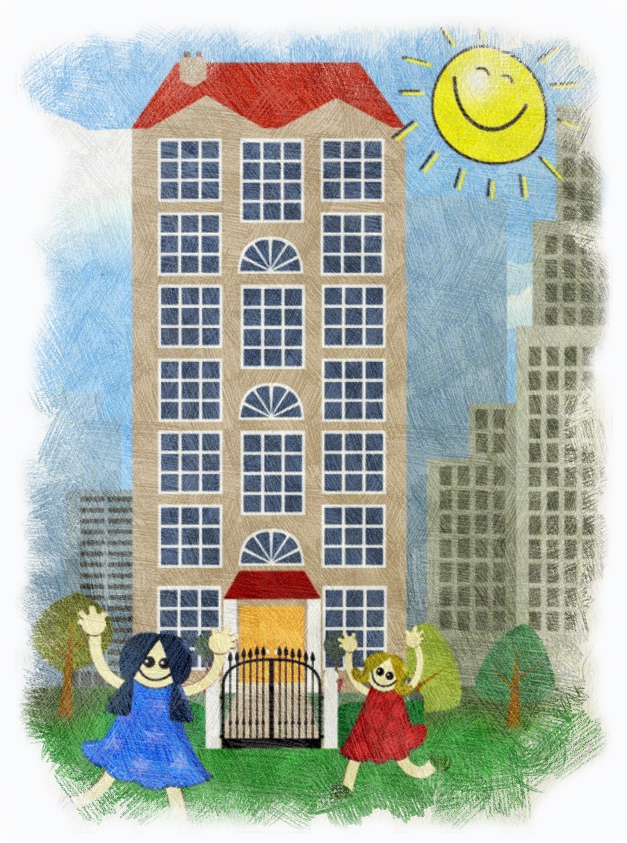 Стену двухэтажного дома оплетала разросшаяся лиана. Девочки подошли ко входу, над дверью которого вывеска с правильными буквами приглашала, – «Добро пожаловать!» На состаренной временем двери висела табличка, – «Вход», а жирная чёрного цвета стрелка в форме молнии указывала на дверную ручку. Над головой был подвешен колокольчик, величиной с ладошку, на язычке которого болталась алая лента. Переминаясь с ноги на ногу, они в нерешительности дёрнули за ленточку. Колокольчик молчал. Затем осмелев, они дёрнули за ленту посильнее, чтобы поскорее узнать, что за этой дверью. По округе разнёсся мелодичный звон.