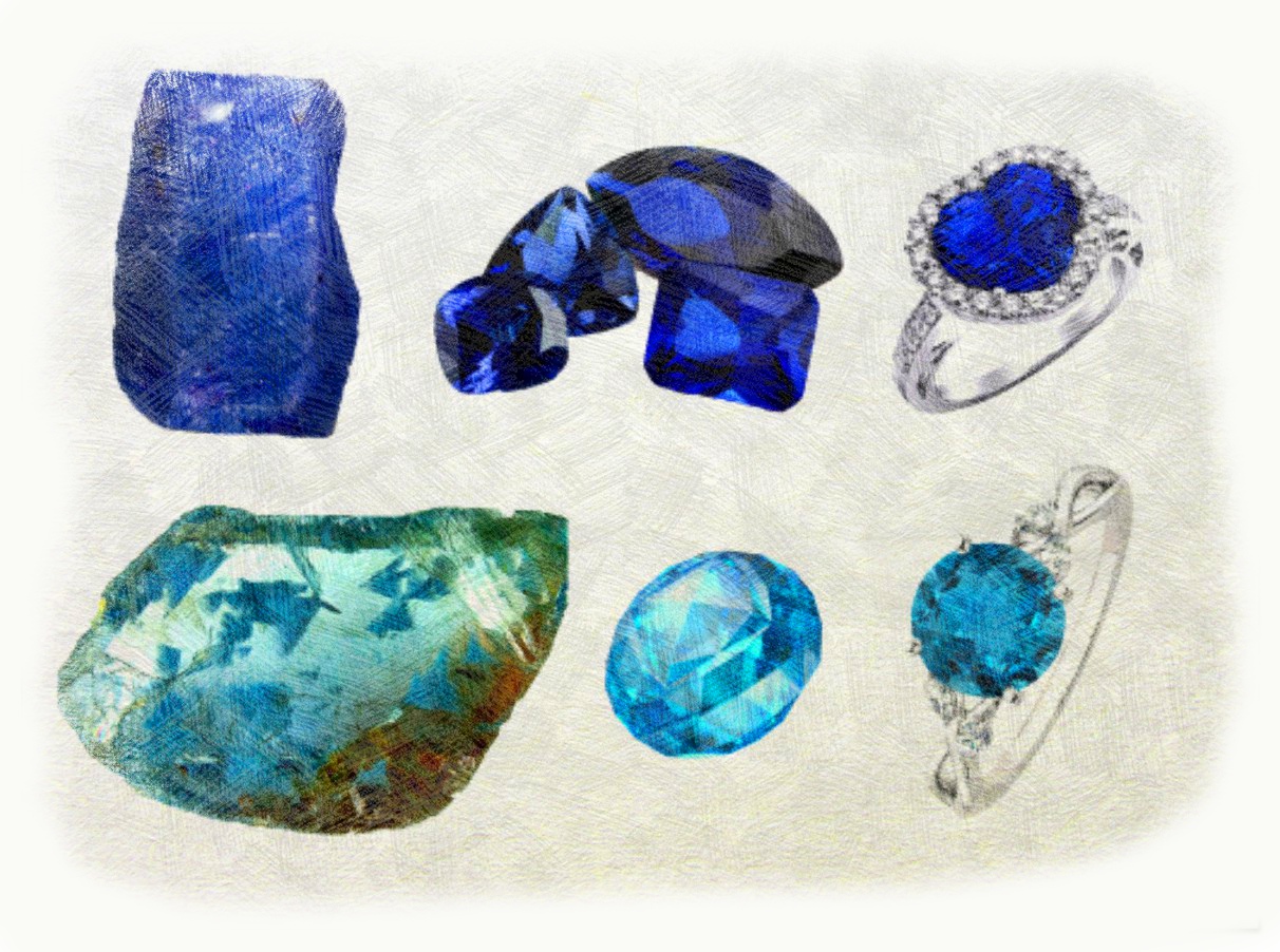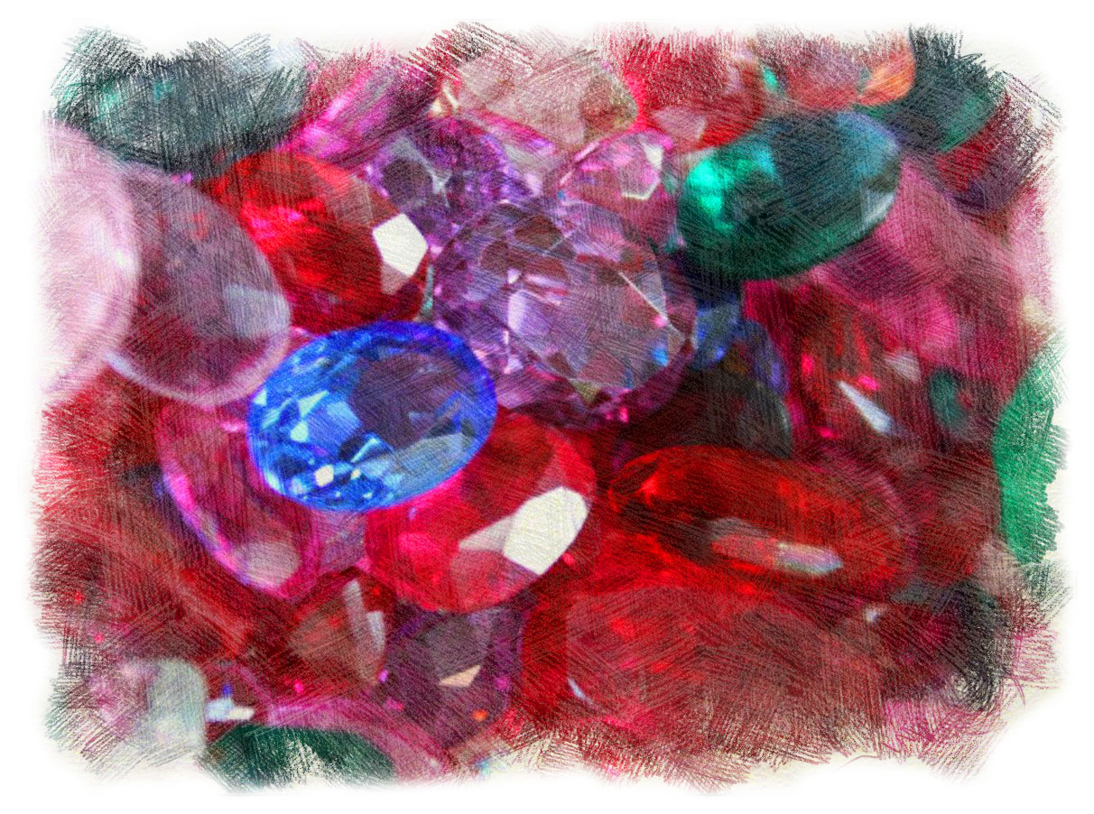 Алмазы, гелиодоры, рубины, изумруды, сердолик