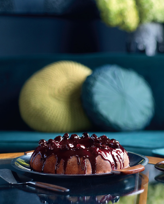 6. Bake for approximately 20–25 minutes or until golden brown and the sponge bounces back when lightly touched. The blueberries will sink into the sponge – this is normal. Leave to cool slightly before removing from the tin and placing on a wire rack to cool completely before frosting.