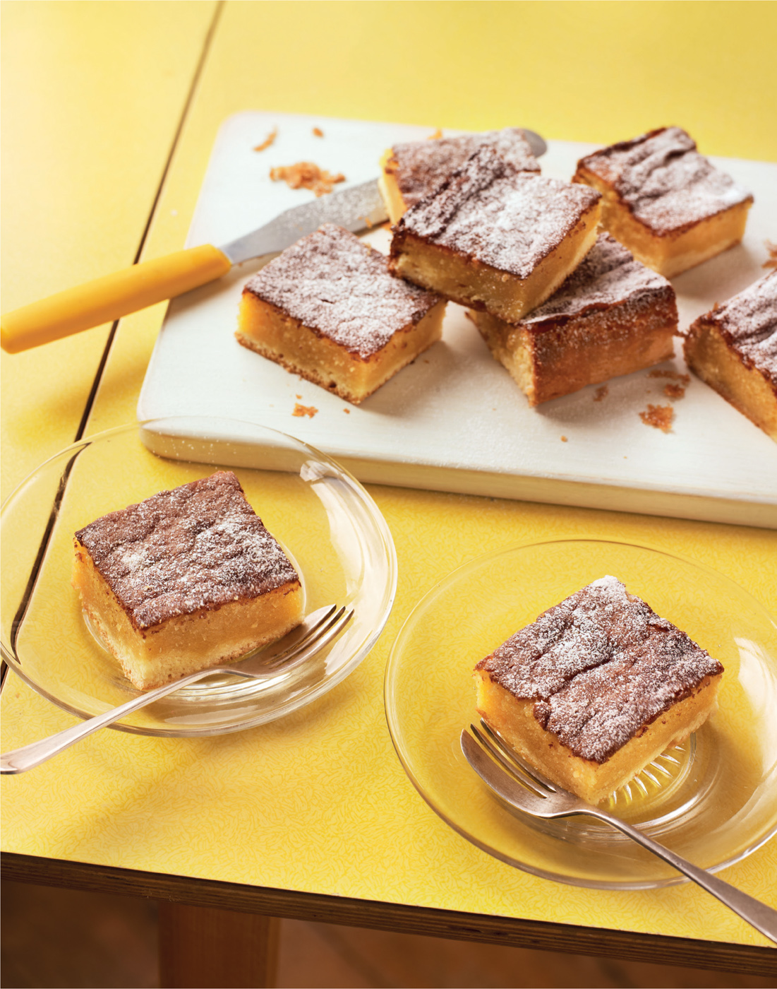 This cake of two parts, a yeast dough base and soft, gooey topping, originates in St Louis, Missouri. Remember to take it out of the oven while still very slightly wobbly – it will firm up and set as it cools.