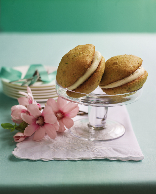 The addition of pistachios makes this an oh-so-elegant whoopie pie variation. Serve them with pistachio ice cream, which can be found in Italian ice-cream shops.