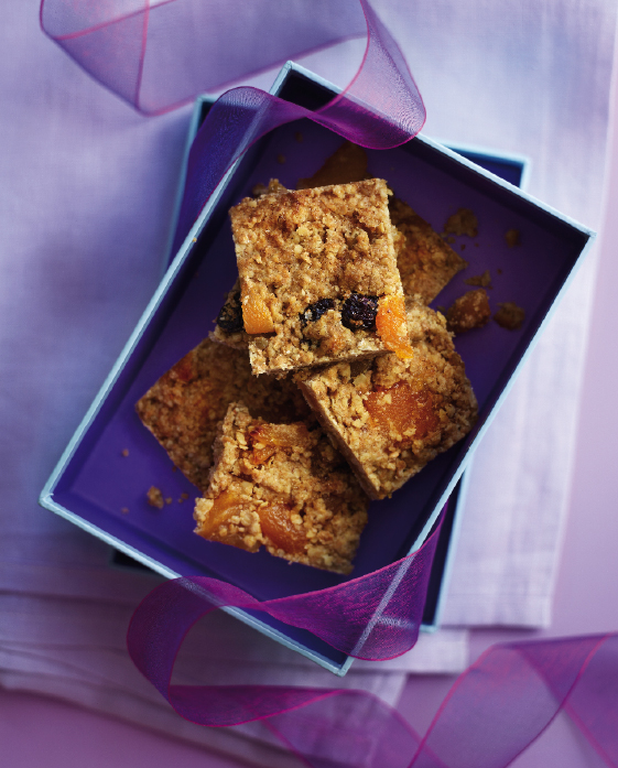 We love these fruity slices drizzled with melted white chocolate. You can substitute raisins or other small, dried fruits for the sultanas if you like.