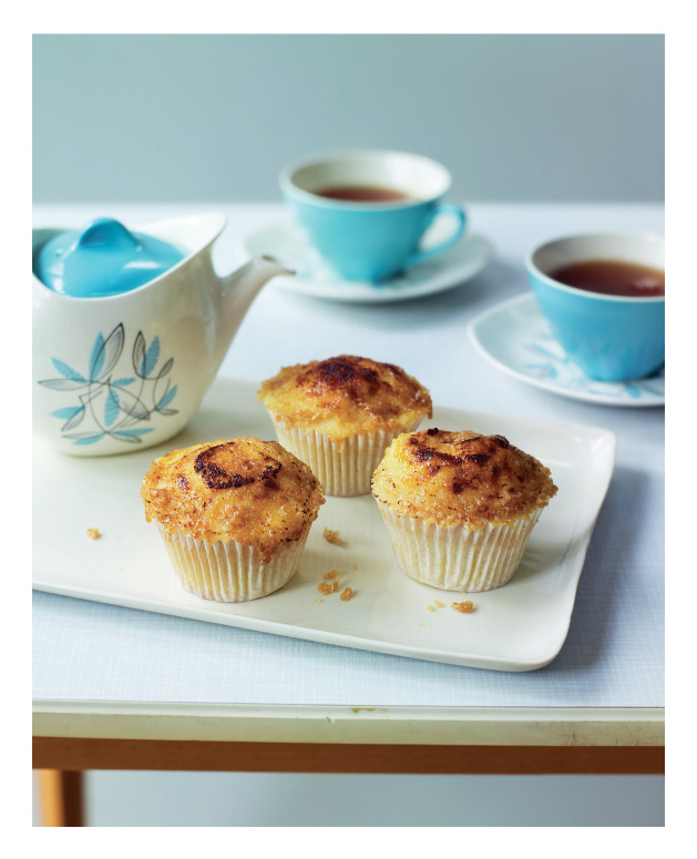 11. Coat the top of each cupcake generously in demerara sugar. Using a cook’s blowtorch, carefully brûlée (lightly burn) the sugar, avoiding the paper cases with the flame. These cupcakes should be served immediately.