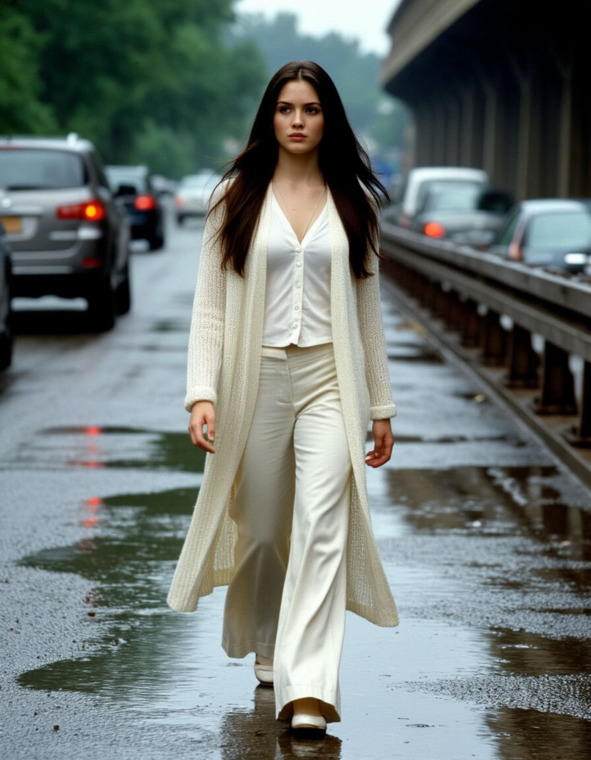 Несмотря на то, что недавно на город обрушился дождь, надеваю кремовые классические брюки, белую, довольно тонкую водолазку и длинный, вязаный, светлый кардиган с большим капюшоном. Добираюсь на метро до Котельнической набережной. Красота! Гуляю. Любуюсь Сталинской высоткой. Размышляю над романом. И все бы ничего, но…