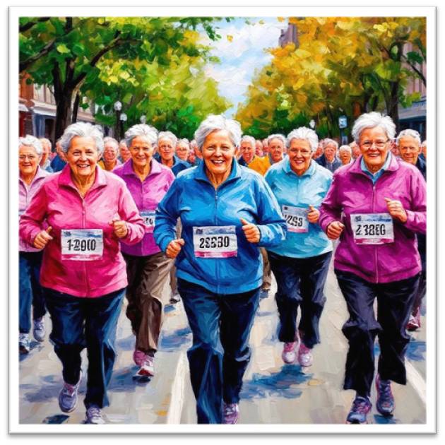 Humming a jaunty tune, as out of tune as a bagpipe convention after a power cut, Jack turned the corner and nearly tripped over a sight that made his jaw drop. Dozens, scores, a veritable army of pensioners, were pounding the pavement, bright-eyed and bushy-tailed, in what appeared to be a 10k marathon.