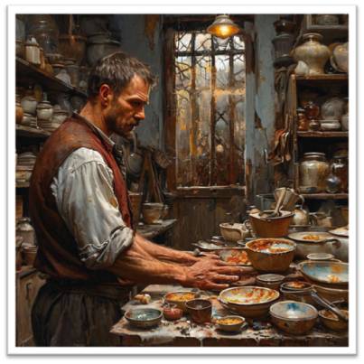 In the heart of the city, where every step seemed like a trial, Colin shadowed his life by anger. Every casual glance, every word full of contempt, added fire to his rage. He worked in a small workshop, where he often found refuge from the humiliations that life so generously laid out before him. But even in his morning creations, Colin found no peace; his hands, tempered by anger, created only bowls full of discontent.