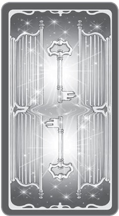 Собственно, чистых сюжетов с ключами всего четыре. Открывает воображаемую дверь Шут, прячет в кулак драгоценный ключ Верховный Жрец, блестит своей связкой хозяйка Туза Пентаклей, и предлагает широкий выбор мастерица из Восьмерки Жезлов. Остальные ключи спрятаны. Мы должны догадаться о них, выделив «ключевой» символ: жест, слово, условный стук или предмет. Художник во многих картах оставляет подсказки в виде фасонов одежды или цветовой гаммы.