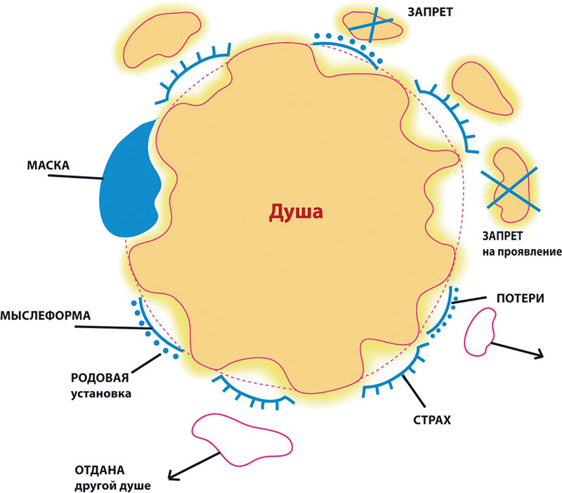 Таким образом, Души, потерявшие свою целостность, закрывают энергетические бреши родовым опытом, паттернами, страхами, которые «защищают» ущербную Душу от боли и разрушительного действия Среды. Через этот панцирь защиты и масок, чужих моделей поведения, Душа не понимает, кто она на самом деле, и не может вести себя естественным образом, быть открытой и непосредственной.