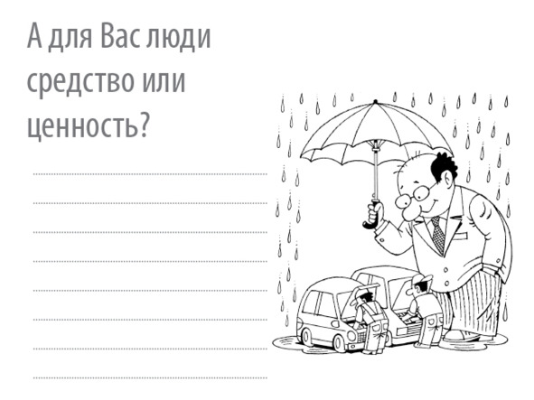 Вернемся к вашим ответам. Замечательно, если вы их записали. Так или иначе, если вам есть что сказать, в каждом вашем ответе будет звучать слово персонал. За технологиями, инновациями, прибыльностью стоят конкретные люди. Именно они в глазах клиентов создают ту самую добавленную стоимость, ради которой затевается любой бизнес. Джим Коллинз в своем исследовании однозначно доказал, что в успешных компаниях работают похожие друг на друга люди, близкие по духу, по ценностям. Именно они и создают уникальное лицо этой компании.