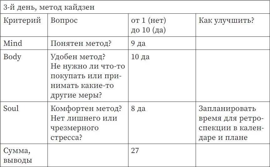 Если распечатать шаблон дегустации (пример заполнения для 3-го дня ниже), то можно уже заполнять его, продвигаясь по этой книге. Вот такая дегустация метода для дегустации книги, простите за тавтологию.