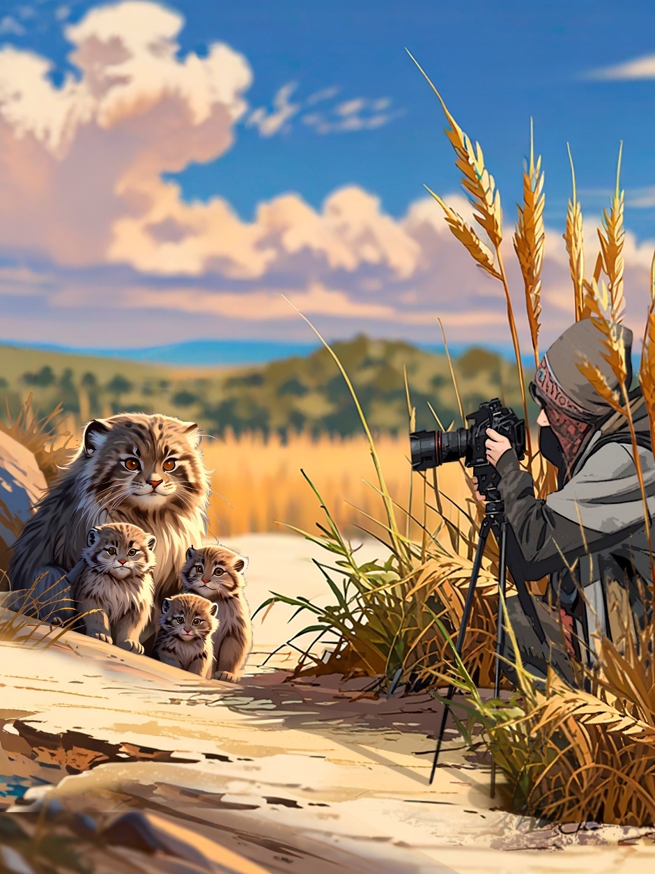 В фотоловушку биологов попал манул. На рассвете ветер в каменистой степи играл высокими травами в первых лучах солнца. Маленький хищник с самым густым среди кошачьих мехом осторожно выглянул из-за камней. Потом насторожился и начал красться вперёд на коротких лапках, припав к самой земле. Несколько осторожных шагов, потом короткая перебежка. Снова дикий кот застыл и стал казаться одни из камней. Ещё пара перебежек, и манул опять замер в пучке высокой травы, примеряясь к финальной атаке на замеченного грызуна.