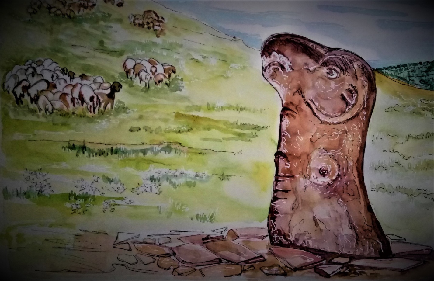 – Древние люди, которые их создали, считали их живыми божествами. Даже приносили пищу, чтобы задобрить каменных богов. О каждом таком менгире люди придумывали истории, давали им имена и обращались с просьбами. Всё это было так давно, что большинство доисторических имён уже забыто. Современные учёные дали менгирам имена, исходя из названий местности, где они обнаружены. Например, вот этот назвали Вершинобиджинский баран.