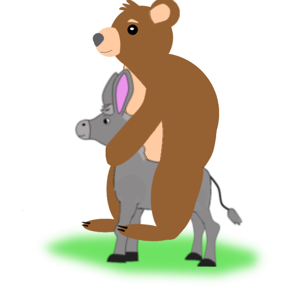 Держится косолапый за ослика. «Как бы не упасть», – думает медведь.