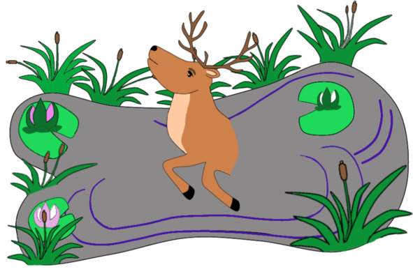 Оказывается, олень в болото попал, а выбраться не может. Хрипит олень, зовет на помощь. А ослик уже бежит ему помогать.